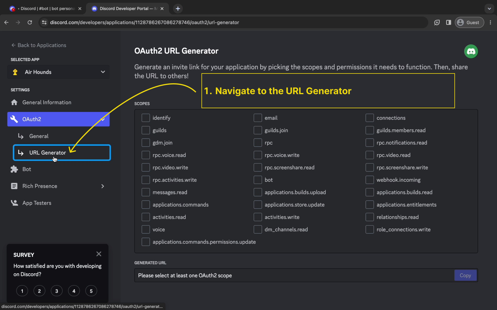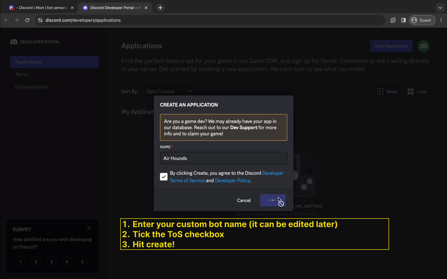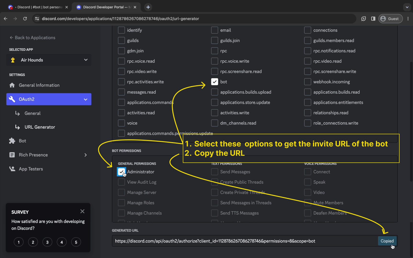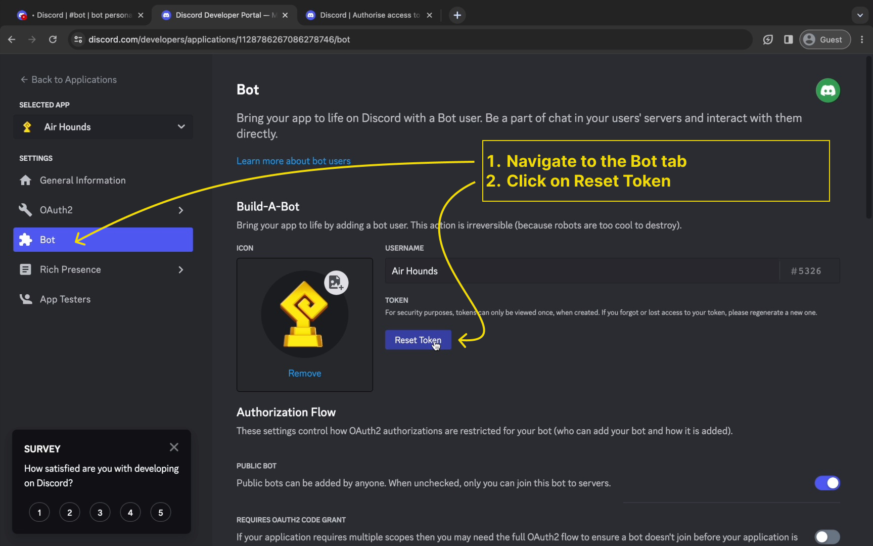 The custom bot requires a bot token that you need to retrieve from the Discord Developer Portal. This token is a highly sensitive credential and you must not share it with anyone.