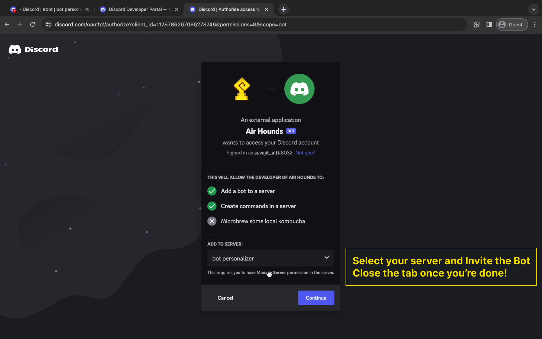 The last step is to invite the bot into our custom emoji servers. Join our support server to get the invite links to the emoji servers.